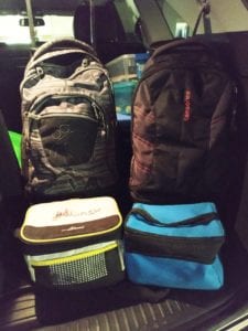 Así quedaron las maletas de los menores, abandonadas en el colegio tras la extracción de su padre.