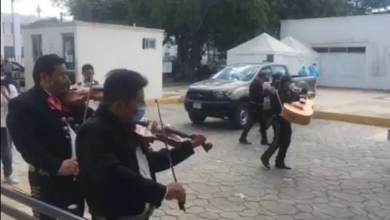 Personal del hospital presenció el momento en que un grupo de mariachis se acercó a la reja del sitio entonando sus canciones, poco después del mediodía, sin embargo, posteriormente, el personal de seguridad les permitió acercarse a los trabajadores.