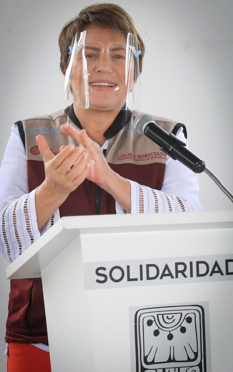 Playa del Carmen, Quintana Roo, a 21 de febrero del 2021.- La presidenta municipal Laura Beristain Navarrete exhortó a los solidarenses a no bajar la guardia y mantenerse firmes en el uso del cubrebocas, gel antibacterial y sana distancia para no perder lo ganado, luego de retornar al color amarillo en el Semáforo Epidemiológico de Quintana Roo, a partir de este lunes 22 de febrero.