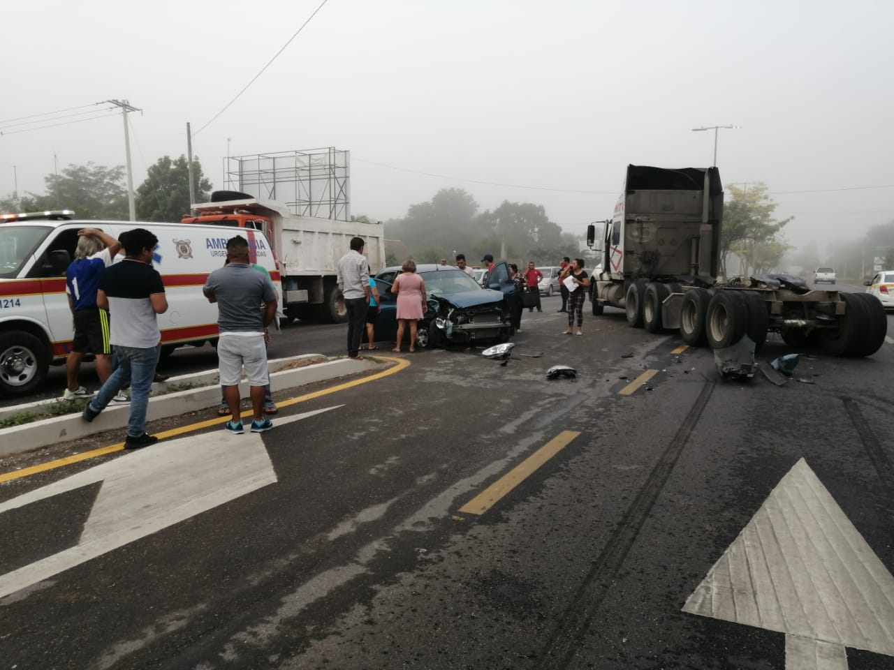Los hechos ocurrieron alrededor de las 8:00 de la mañana de hoy martes, cuando las ocupantes del auto March color azul se dirigían de Chetumal a Santa Elena, pero repentinamente el chofer del tráiler de la empresa “MTC” con número económico 120 del Servicio Público Federal giró sin percatarse de la unidad, por la velocidad en la que circulaban no le dio tiempo de frenar y terminó en las resistentes llantas traseras de la pesada unidad.