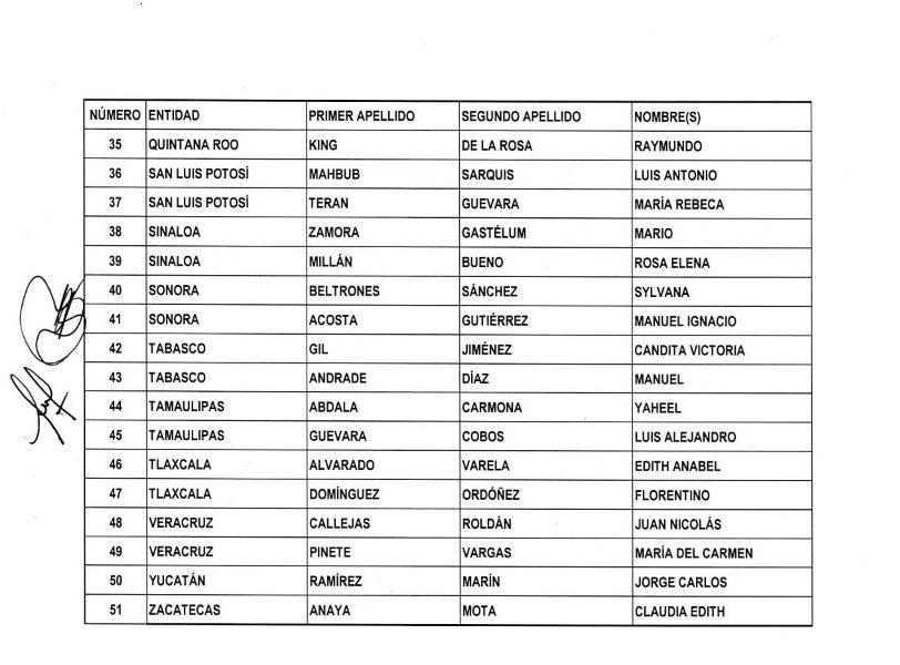 El comunicado dice que “se informa que las personas señaladas en el anexo de la presente notificación, tienen el derecho de acudir al órgano auxiliar de la Comisión Nacional de Procesos Internos en la entidad que les corresponda, para promover su registro y complementación de requisitos”.