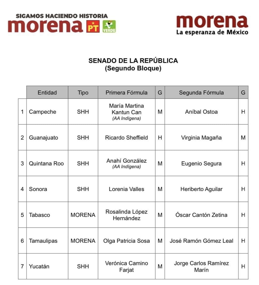 En un comunicado, la Coalición Sigamos Haciendo Historia y Morena, presentó el segundo bloque de precandidaturas únicas al Senado de la República en 7 entidades federativas.