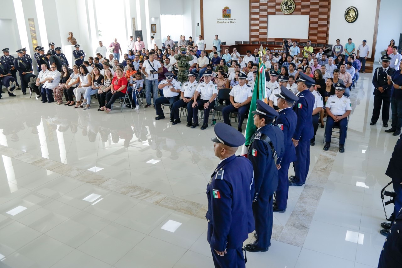 Posteriormente, se entonaron el Himno de Quintana Roo y Nacional Mexicano, y se pasó lista de honor por parte del Coronel de Infantería, David Méndez García, de la Guarnición Militar de Cancún.