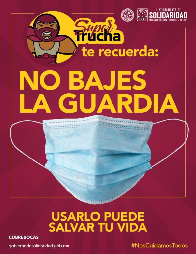 A través de la imagen de un personaje de lucha libre, “Súper Trucha”, el Ayuntamiento de Solidaridad, promueve acciones responsables para la nueva realidad, recordando a los solidarenses que la reapertura gradual de las actividades no implica el fin del coronavirus, por lo que es importante no bajar la guardia con las medidas de cuidado personal para evitar una nueva ola de contagios.