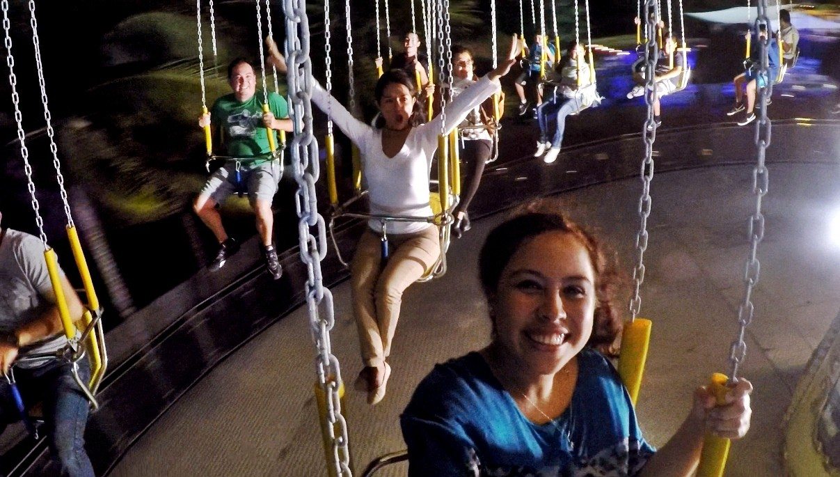 Fun World apela a la nostalgia de las ferias de antaño, no te puedes perder la experiencia de subirte a la montaña rusa, pues no encontrarás una igual en Cancún, también están las sillas locas en las que te columpias desde las alturas y para los niños está el clásico carrusel.