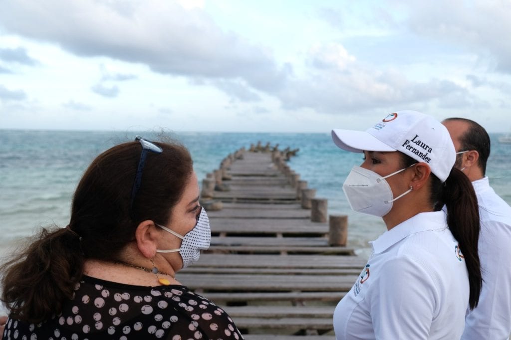 Con la presencia del secretario general del Ayuntamiento, Miguel Ángel Zetina Cuevas, la Presidenta Municipal mostró en primer término a la funcionaria estatal, quien acudió en representación del gobernador Carlos Joaquín González, los daños que sufrió el muelle de pescadores, sitio emblemático al que arriban anualmente más de 100 mil turistas, para tomar un tour al arrecife o realizar alguna otra actividad acuática que ofrecen los prestadores de servicios náuticos de la localidad.