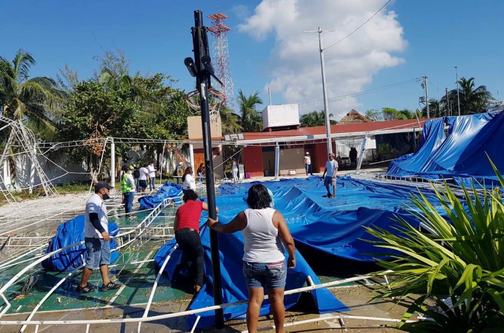 Explicó que en la primaria “Adolfo López Mateos”, ubicada a escasos metros del mar en la avenida Javier Rojo Gómez, en el Casco Antiguo, se vino abajo la estructura del domo a causa de los fuertes vientos de “Delta”, por lo que fue necesaria la intervención del equipo de Bomberos para retirar tubos y lonas.