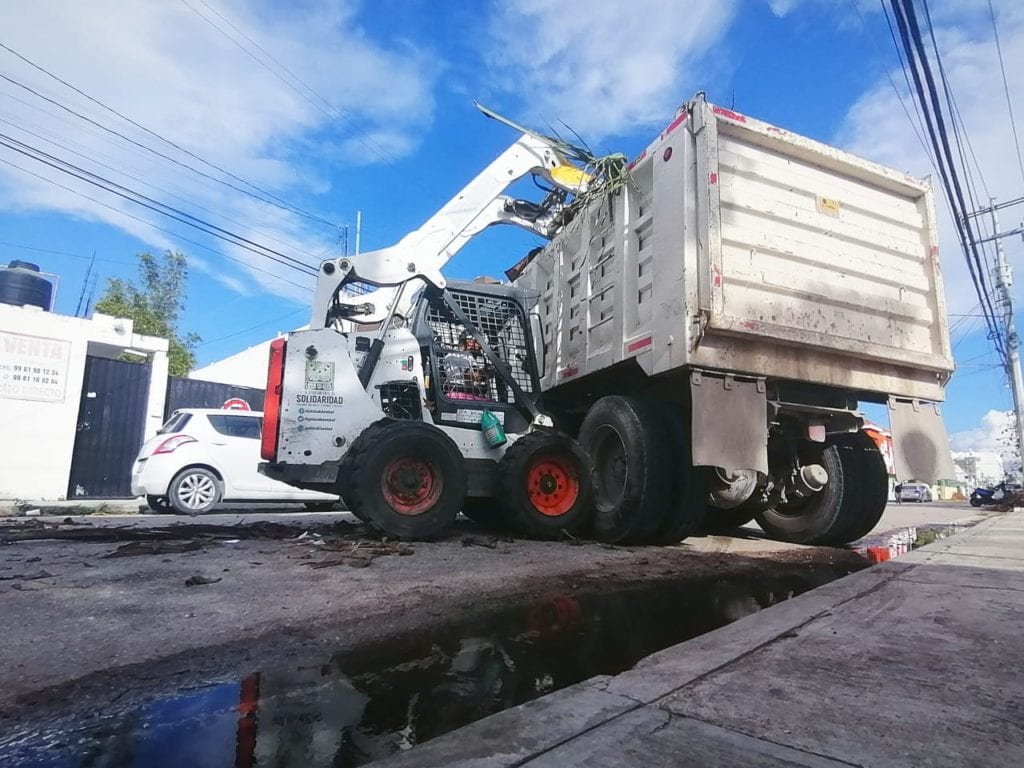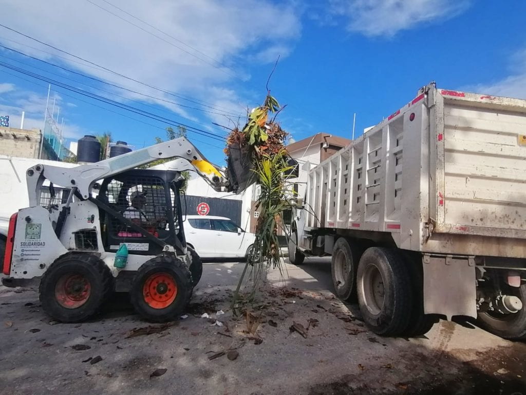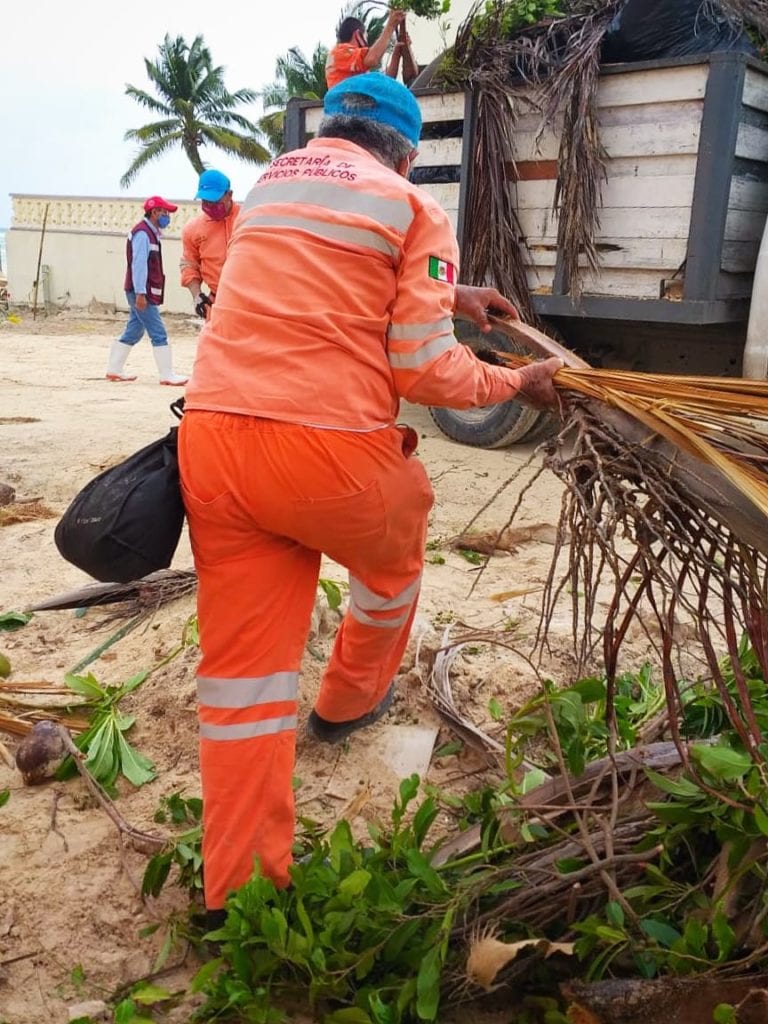 Playa del Carmen, Quintana Roo, 30 de octubre del 2020.-Trabajadores de la Secretaría de Servicios Públicos mantienen tareas de limpieza tras las afectaciones que dejaron en el municipio los tres fenómenos meteorológicos que impactaron recientemente la entidad.
