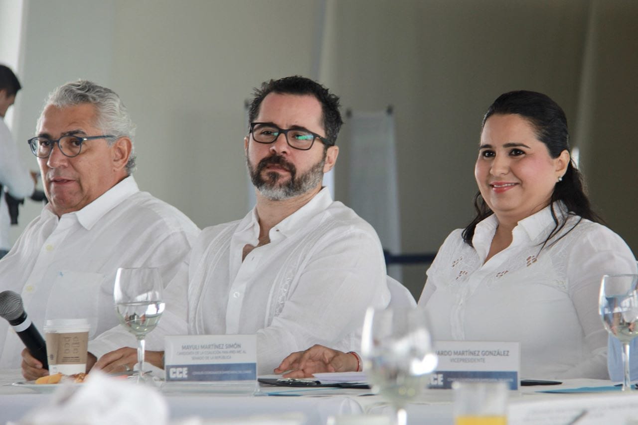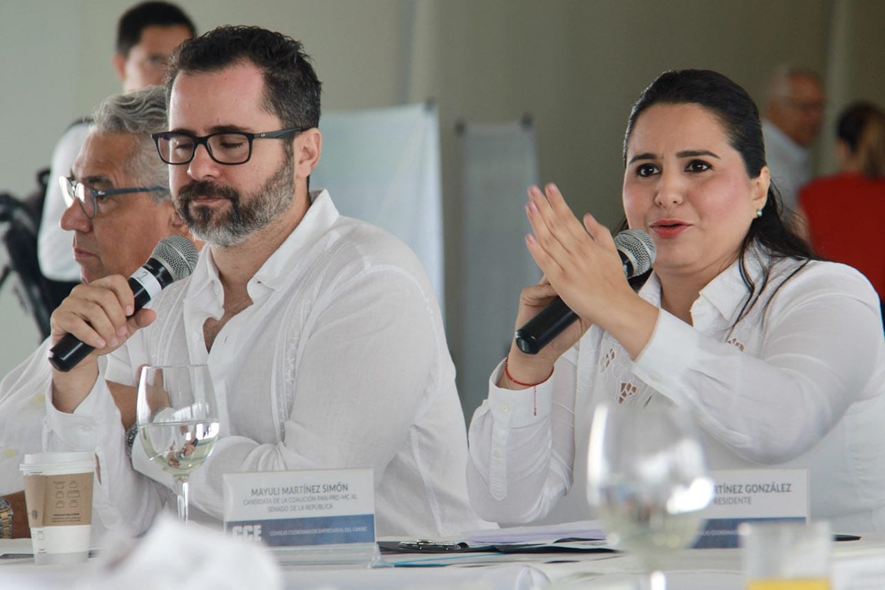 Cancún.- La candidata a senadora de la coalición “Por Quintana Roo al frente”, Mayuli Martínez, dijo a los integrantes del Consejo Coordinador Empresarial del Caribe (CCE) que con el apoyo de Ricardo Anaya como presidente de México, todos los servidores públicos corruptos serían destituidos y se les aplicaría la muerte civil –nunca más ocupar un cargo– y que se eliminaría el fuero constitucional.