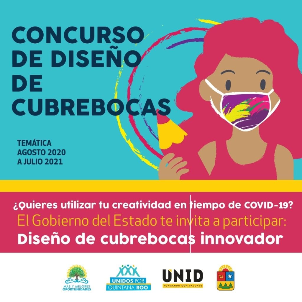 Playa del Carmen, Quintana Roo.-Los quintanarroenses más creativos y propositivos están convocados por la Unid y por el Gobierno estatal a través de Unidos por Quintana Roo, a participar el el concurso “Diseño de cubrebocas”, que tiene el objetivo de promover el cuidado de la salud ante la llegada del Covid-19 que formó una nueva normalidad y también el ingenio de los ciudadanos.
