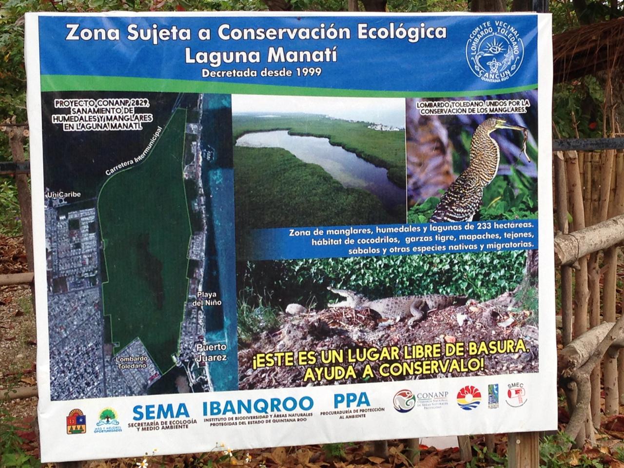 Estos terrenos pertenecen a la “zona sujeta a conservación ecológica Laguna Manatí”, decretada por el entonces gobernador de Quintana Roo, Joaquín Ernesto Hendricks Díaz (1999-2005), desde el 9 de agosto 1999, como proyecto de la Comisión Nacional de Área Natural Protegida para “saneamiento de humedales y manglares en la Laguna Manatí”.