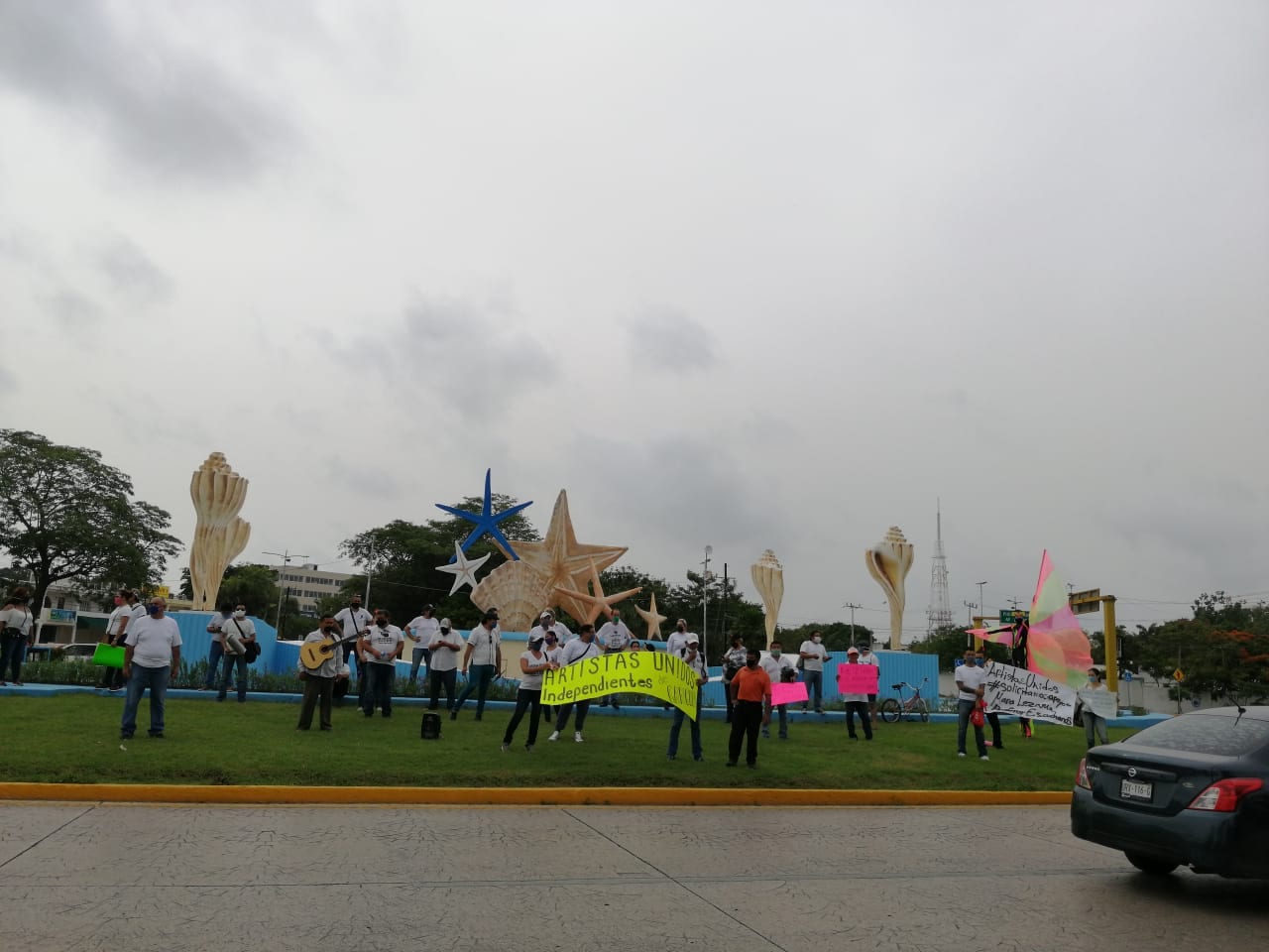 Cancún.- Artistas independientes de Cancún se manifestaron de forma pacífica en la glorieta del “Ceviche” para que sean tomados en cuenta en las actividades económicas próximas a reabrir, pues argumentan que es su única fuente de ingreso.