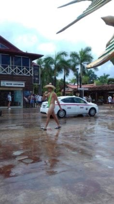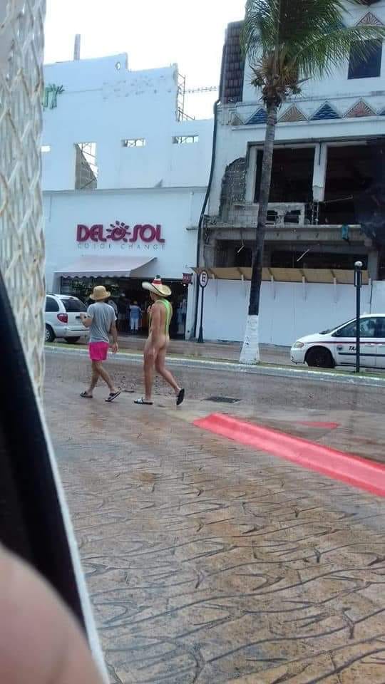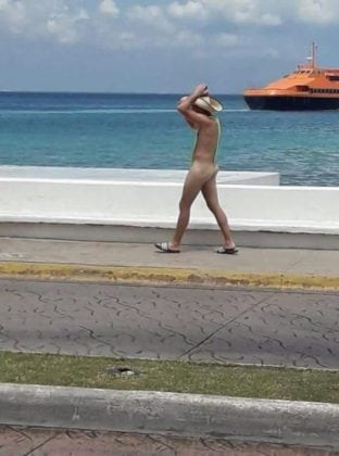 Cozumel.- Un turista fue el centro de atención hoy en Cozumel, al pasear por el malecón con una diminuta prenda de vestir, al estilo del personaje de la película Borat.