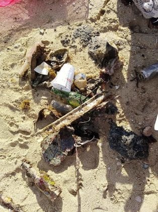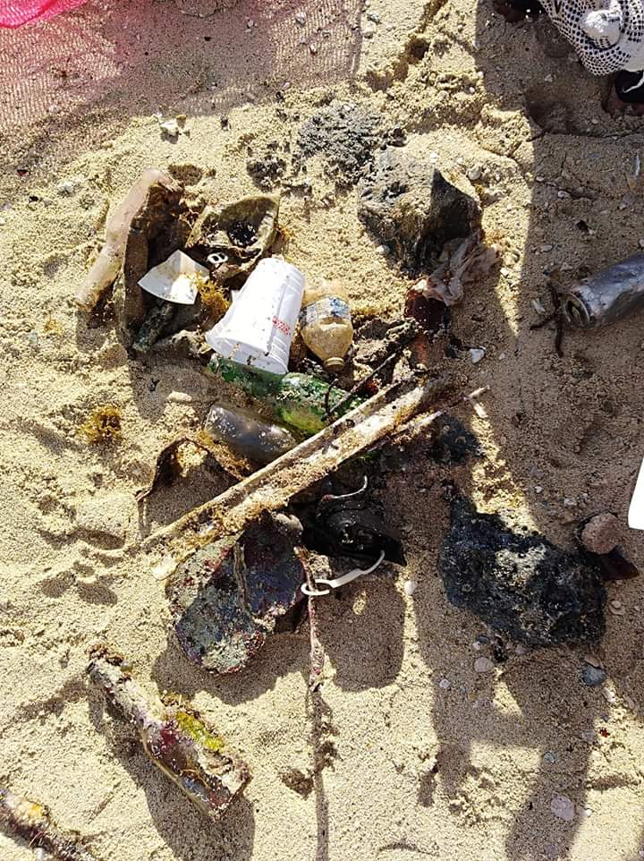 Dentro de los materiales que se recolectaron se encuentran botellas de cristal y plástico, latas, piezas o pedazos de las embarcaciones, algunos con bastante tiempo en el fondo marino, al grado de que ya cuentan incluso con algas en sus contornos y hasta algunas especies ya las estaban tomando como su hábitat, por lo que después de ser sacados, se regresaron al lecho marino.