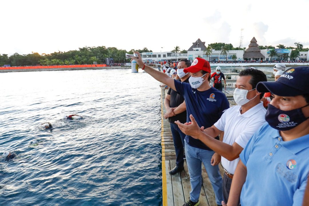 Previamente, en punto de las 6:50 horas en el parque Chankanaab, el Presidente Municipal dio el disparo de salida a los más 2,150 triatletas que participaron en este segundo día de actividades del Mazda Ironman 70.3, en la máxima categoría de la competencia, la Elite para hombres y mujeres, así como la categoría varonil de 18 a 44 años.