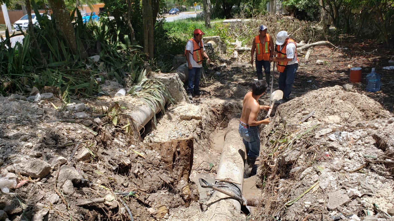 “Tenemos este problema (fuga) desde hace varios días; se controló desde hace tres días; como pueden ver ya tenemos todo el equipo y material para hacer el cambio; es una fuga que ocasionaron las raíces de un árbol, las que se cortaron, pues la estaban abrazando y perforando (a la tubería). Ya está por llegar una de las juntas que hacen falta para el corte y unir lo nuevo; mañana tendremos una suspensión de agua de cinco o seis horas”, aseguro en entrevista Lizbeth Escartin López.