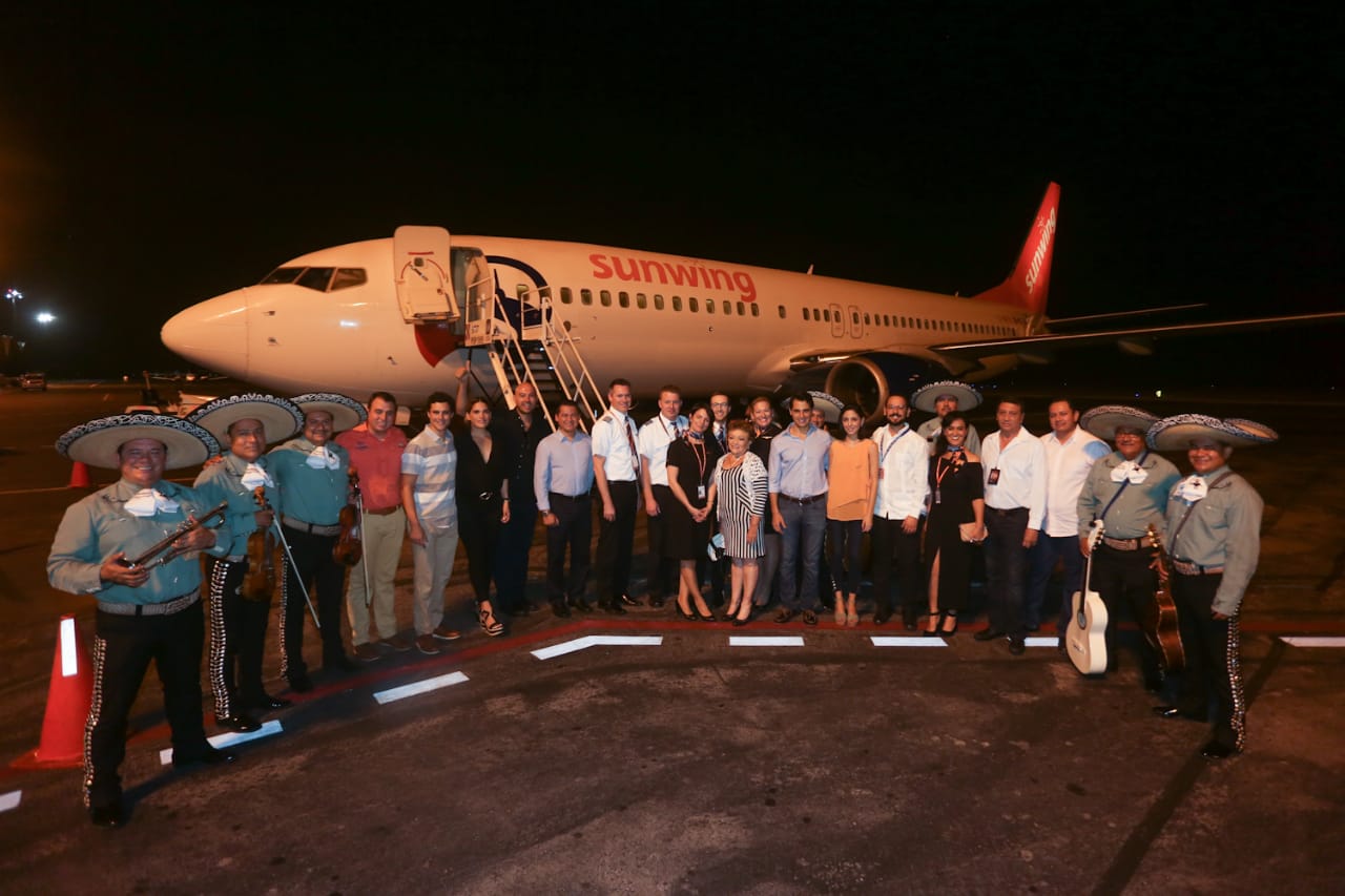Cozumel.- Como lo había anunciado por la mañana de hoy viernes, el administrador del aeropuerto internacional de Cozumel, Jorge Campos Romero dio la bienvenida a los pasajeros de la nueva ruta procedente de Toronto, Canadá, de la aerolínea Sunwing, que ya opera en la isla con un vuelo de la ruta procedente de Montreal, Canadá.