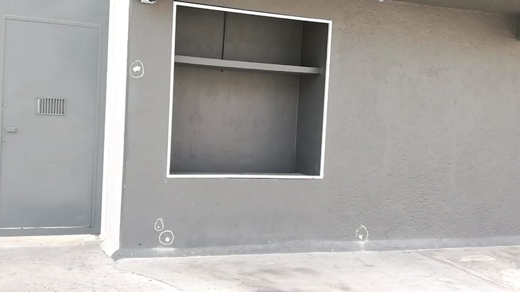 Al revisarla fachada del edificio, los policías hallaron siete impactos de arma de fuego, los que fueron marcados. Ninguno perforó, pues la reja es de acero grueso.