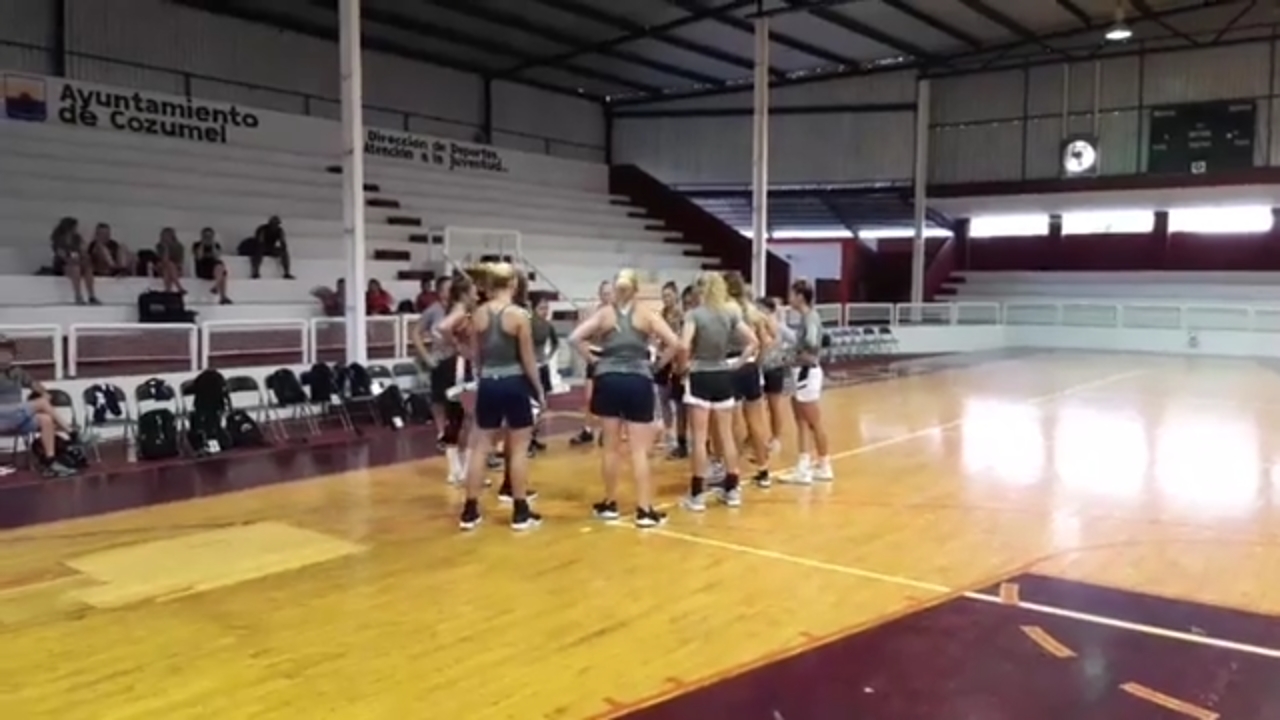 Las universitarias realizaron su primer entrenamiento en forma este domingo por la mañana, por la tarde, los entrenadores impartieron una clínica a entrenadores de la isla, principalmente quienes dirigen selectivos cozumeleños y formadores, mientras que más tarde sostuvieron una segunda sesión de entrenamiento en la que se permitió la presencia de los entrenadores locales.