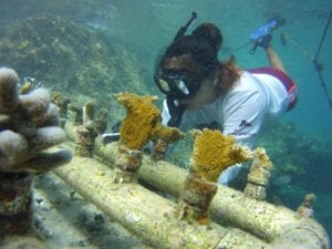Cozumel.- Voluntarios y jóvenes que realizan su servicio social en la Fundación de Parques y Museos de Cozumel (FPMC), llevaron acabo este fin de semana una jornada de monitoreo y limpieza del vivero de corales que se encuentra en el Parque Natural Chankanaab, como parte del Programa de Restauración de Arrecifes que se suma al compromiso del Gobernador del Estado, Carlos Joaquín González, de sembrar más de 260 mil corales a lo largo de seis años.