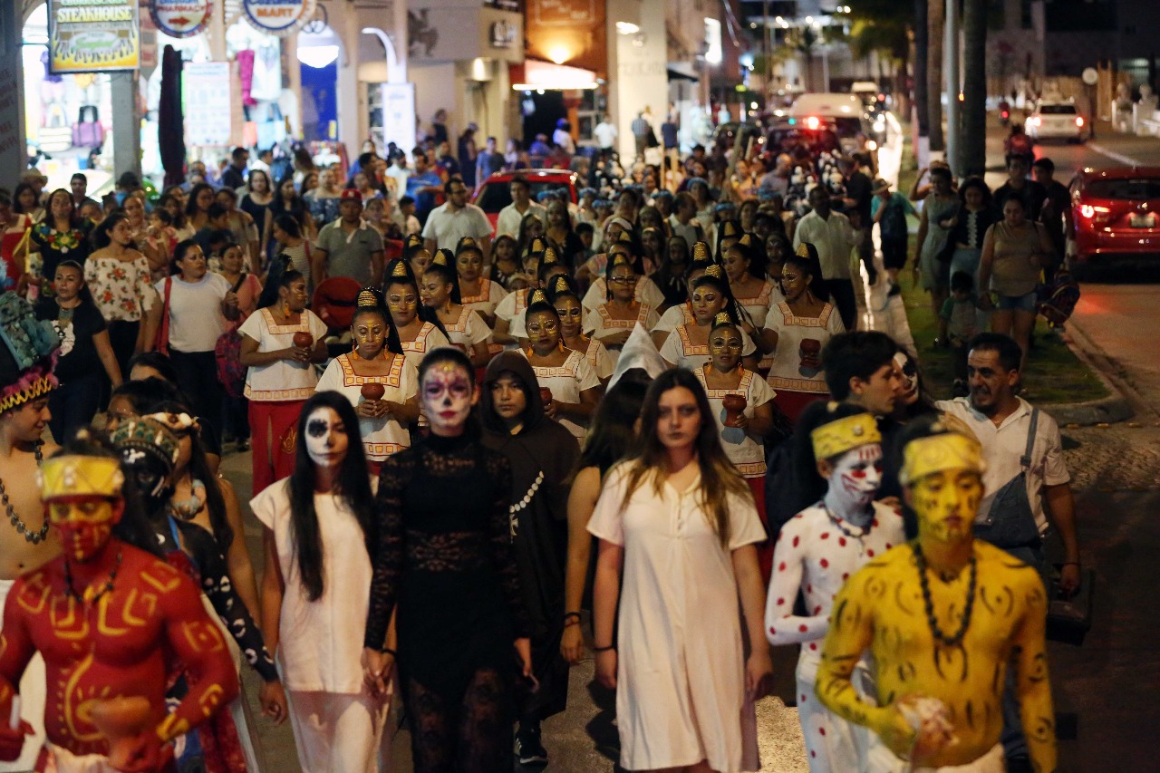 Cozumel.- Por primera ocasión en la historia de la isla se llevó a cabo la “Procesión de las animas” con un recorrido que salió del cementerio pasó por el malecón de Cozumel hasta llegar al parque Benito Juárez, donde se realizaron diferentes concursos.