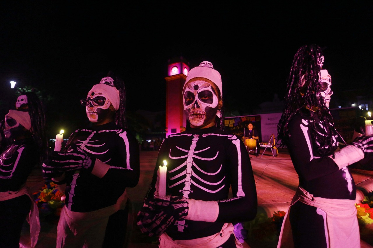 Este evento celebrado la noche del miércoles dio inicio en el panteón municipal “San Miguel”, donde alumnos de teatro de la Subdirección de Cultura personificaron a la princesa maya, Zazil Há, y al marino español, Gonzalo Guerrero, quienes realizaron un recorrido por el camposanto, compartiendo con los asistentes leyendas mayas y la historia de amor que tuvieron estos personajes.