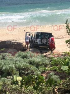 Los hechos ocurrieron cerca de las 15:00 horas de este lunes cuando unos turistas que viajaban a bordo de un vehículo tipo Jeep color gris de una rentadora local, se salieron de la ciclovía donde circulaban indebidamente saliéndose del camino hacia la arena y quedando dentro de la playa en las cercanías de San Martín. Los tripulantes resultaron ilesos.