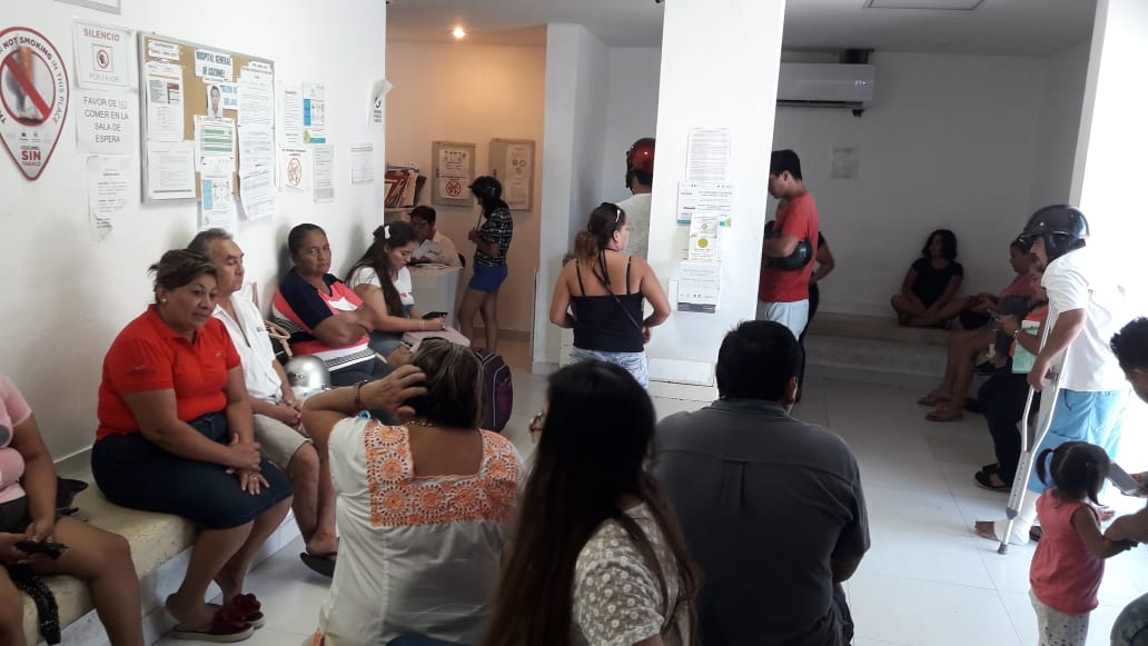 COZUMEL.- Médicos trabajan a la hora que quieren en el Hospital General de Cozumel, pacientes que acudieron a consulta desde las 8:30 de la mañana de este lunes y hasta las 10:20 horas iniciaron con la atención con un solo médico, mientras que la sala de urgencias se encuentra llena.