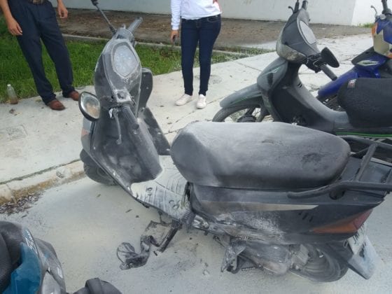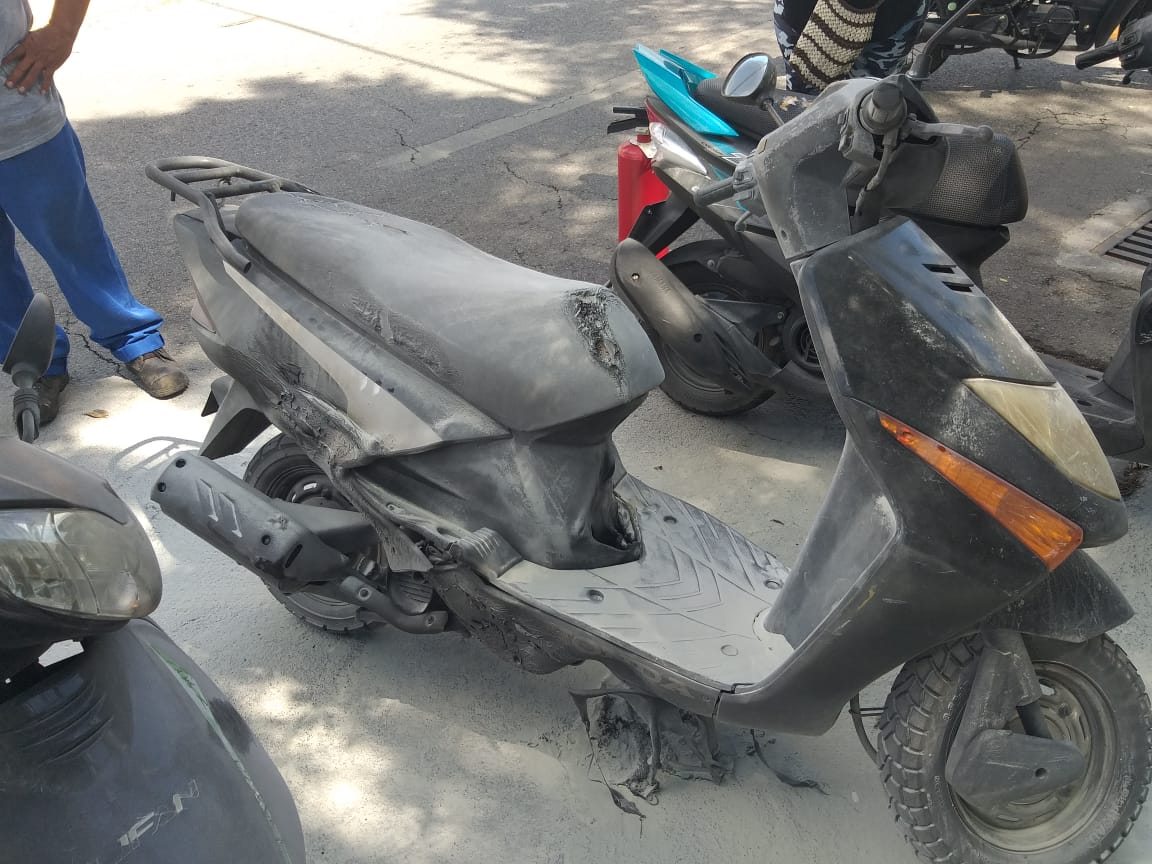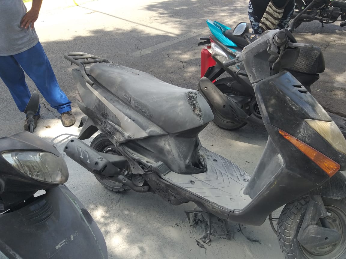 COZUMEL.- Dos sujetos a bordo de una motocicleta llegaron a las afueras del CBTIS #28 para echarle combustible a una motocicleta y prenderle fuego al vehículo de una joven estudiante, trabajadores de una agencia de autos intervino con extintor para apagar el fuego a tiempo; la joven dijo que desde hace unos días se percató que era seguida por extraños pero no le había dado importancia. Acudió a interponer denuncia ante la Fiscalía General del Estado.
