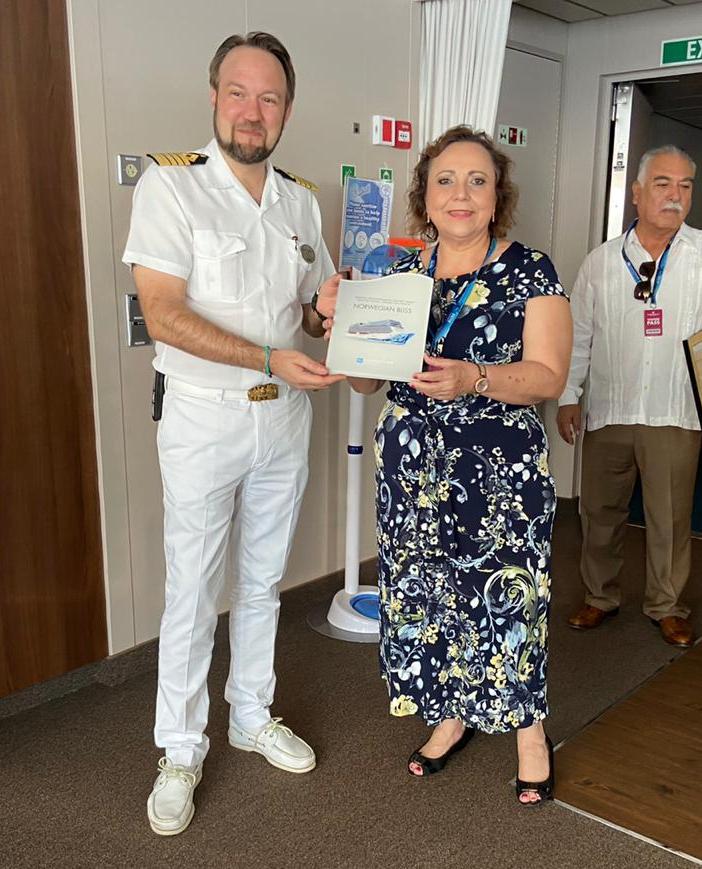 En representación del gobernador Carlos Joaquín, la directora general de la Administración Portuaria Integral de Quintana Roo (Apiqroo), Alicia Ricalde Magaña, dió la bienvenida al navío y su tripulación en donde afirmó que Cozumel se convertirá en uno los principales puertos de destino de Norwegian Crusie Lines, una de las navieras más importantes del mundo.