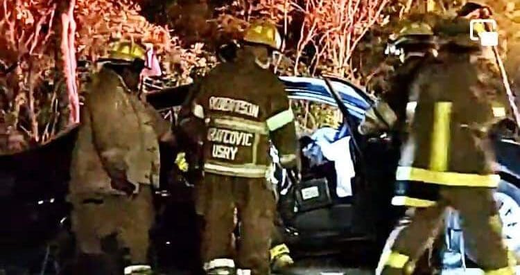 Unos empleados del establecimiento de limpieza se encontraban en un automóvil Bora sin placas cuando se estrellaron contra un árbol.