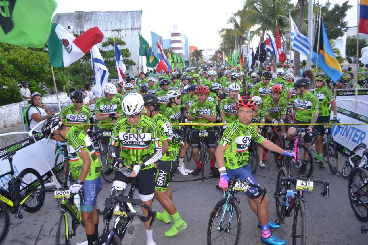La prueba inicio a las 7:30 de la mañana de este domingo a un costado del parque Quintana Roo donde los más de tres mil participantes fueron saliendo, evento que duró 16 minutos hasta que salió el último ciclista, realizando un recorrido de 160 kilómetros (Dos vueltas al circuito) para los que efectuaron el GFNY y de 80 kilómetros para quienes realizaron el Medio GFNY alrededor de la isla y dentro de la zona urbana y hotelera norte del destino.