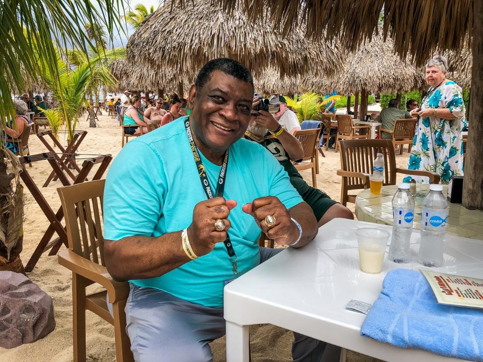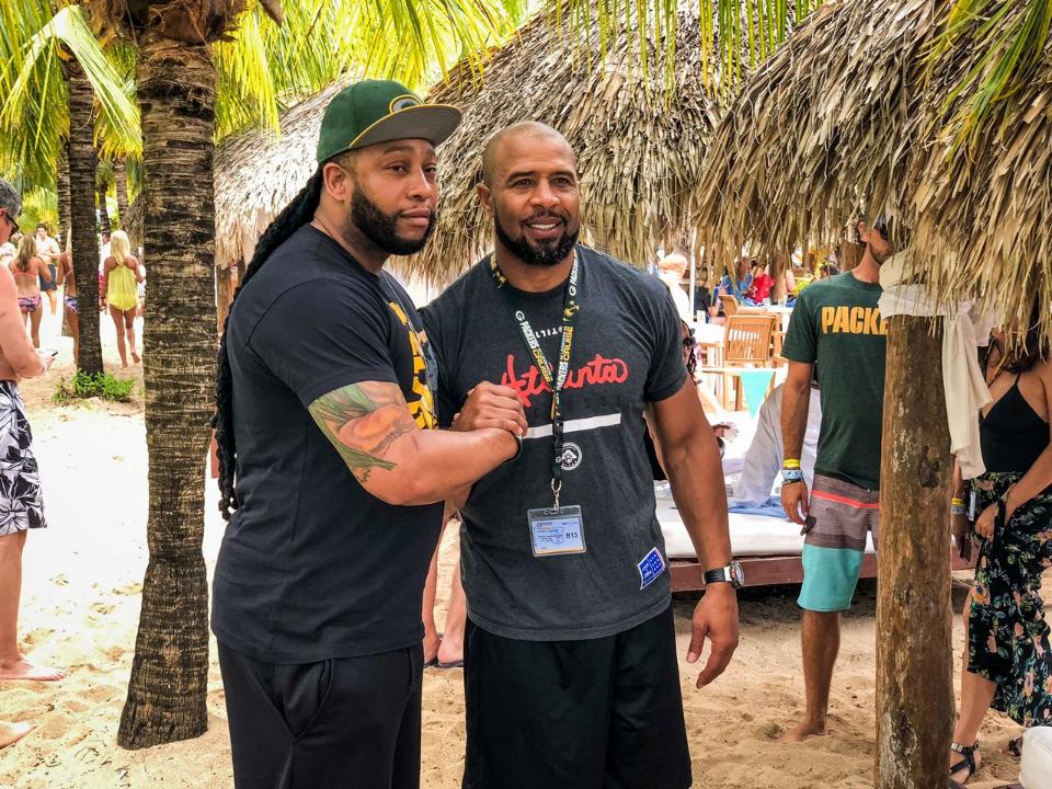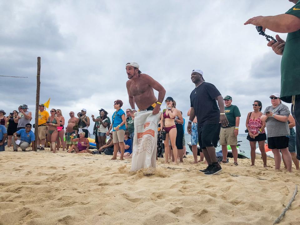 El excorredor Dorsey Levens fue otro de los que disfrutó esta tradicional actividad previo al inicio de los entrenamientos.