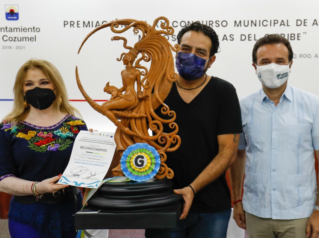 En el concurso participaron 33 artesanos, de los cuales Josué Estrada Reyes recibió el Galardón Municipal “Manos Mágicas 2021” por la obra “Ixchel”, una pieza de tallado en madera.