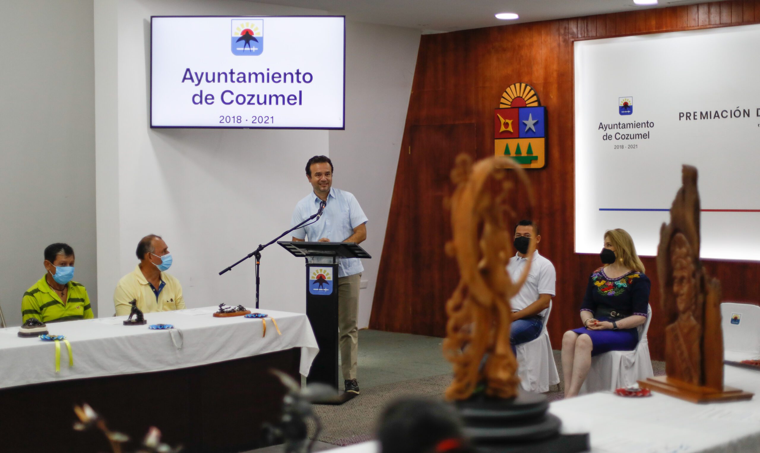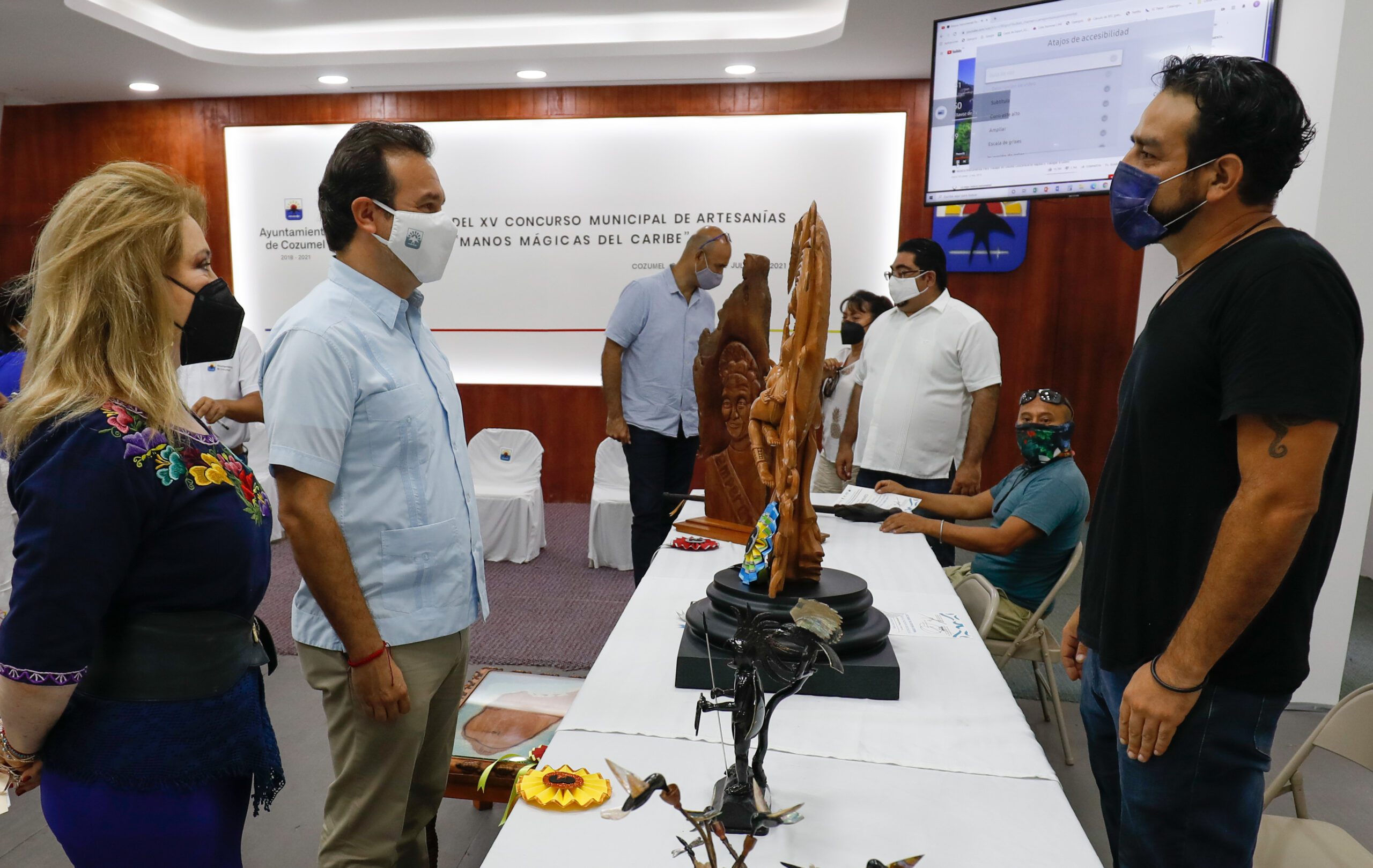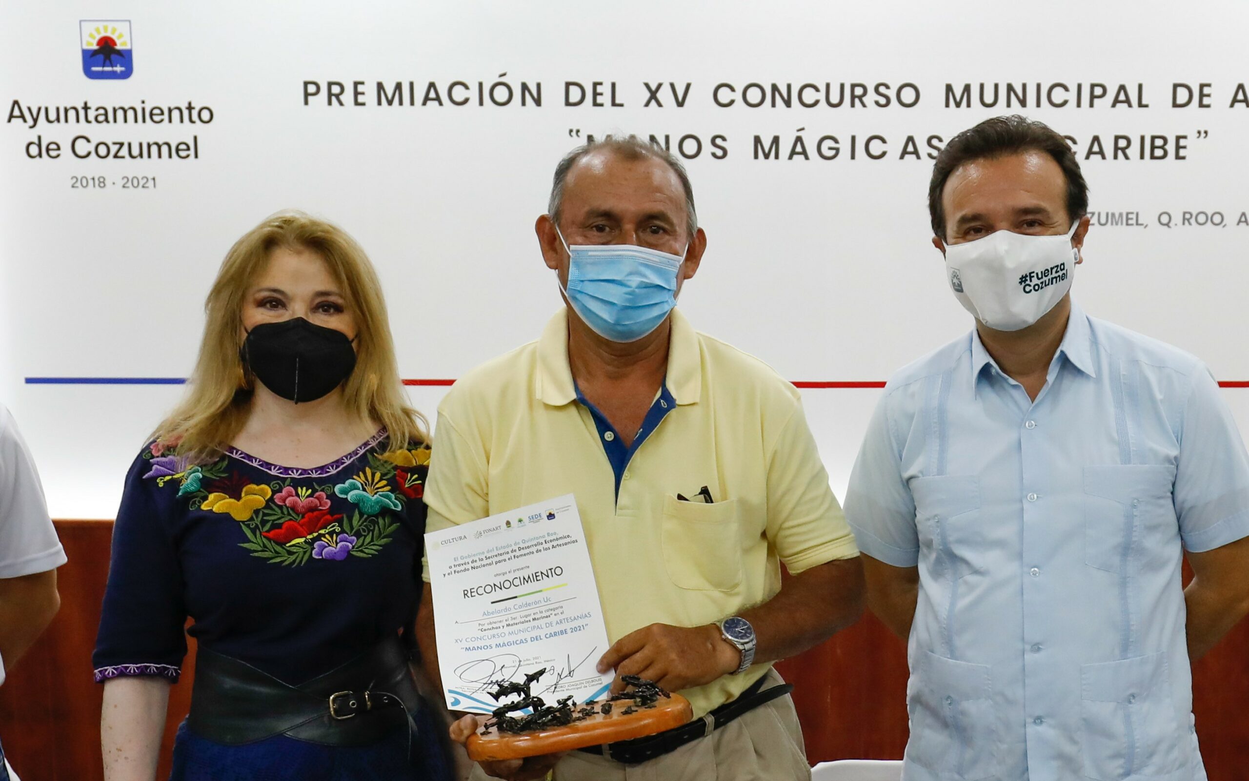 Cozumel, Quintana Roo.-El Presidente Municipal, Pedro Joaquín Delbouis, entregó reconocimientos a los ganadores del XV Concurso Municipal de Artesanías “Manos Mágicas el Caribe 2021”, con el fin de reconocer e impulsar el trabajo de los artesanos de la isla.
