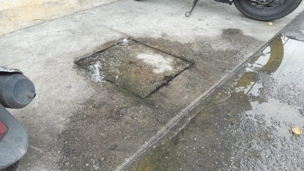 Cozumel, Quintana Roo.- Causando malos olores en el lugar y una una pésima imagen para el destino, rebosan aguas negras frente al Palacio Municipal de Cozumel, queja que hacen empresarios y vecinos del lugar.