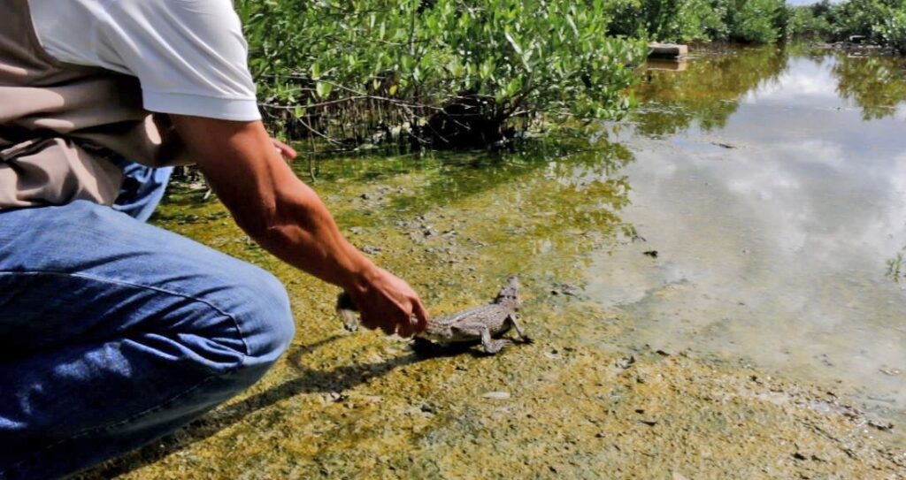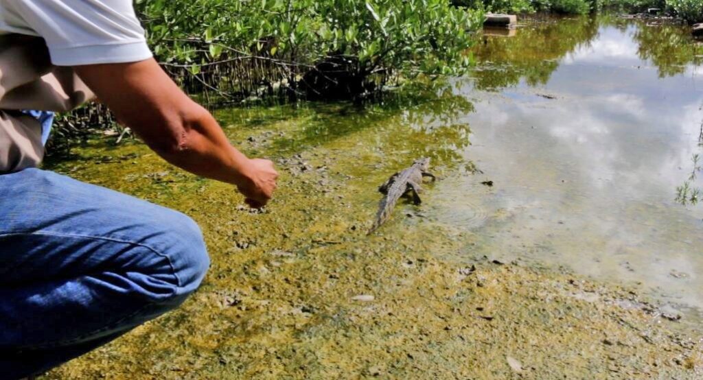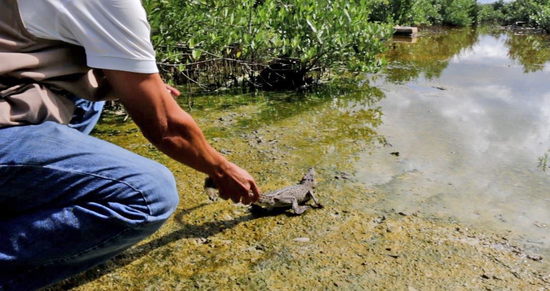 Germán Yañez Mendoza, subdirector municipal de Ecología, explicó que personal de su dependencia acudió al lugar, luego de que les fuera reportada la existencia de este reptil, de pocos meses de vida. El pequeño saurio fue rescatado y devuelto a un manglar en la zona norte de la isla, rumbo a la Isla de la Pasión.