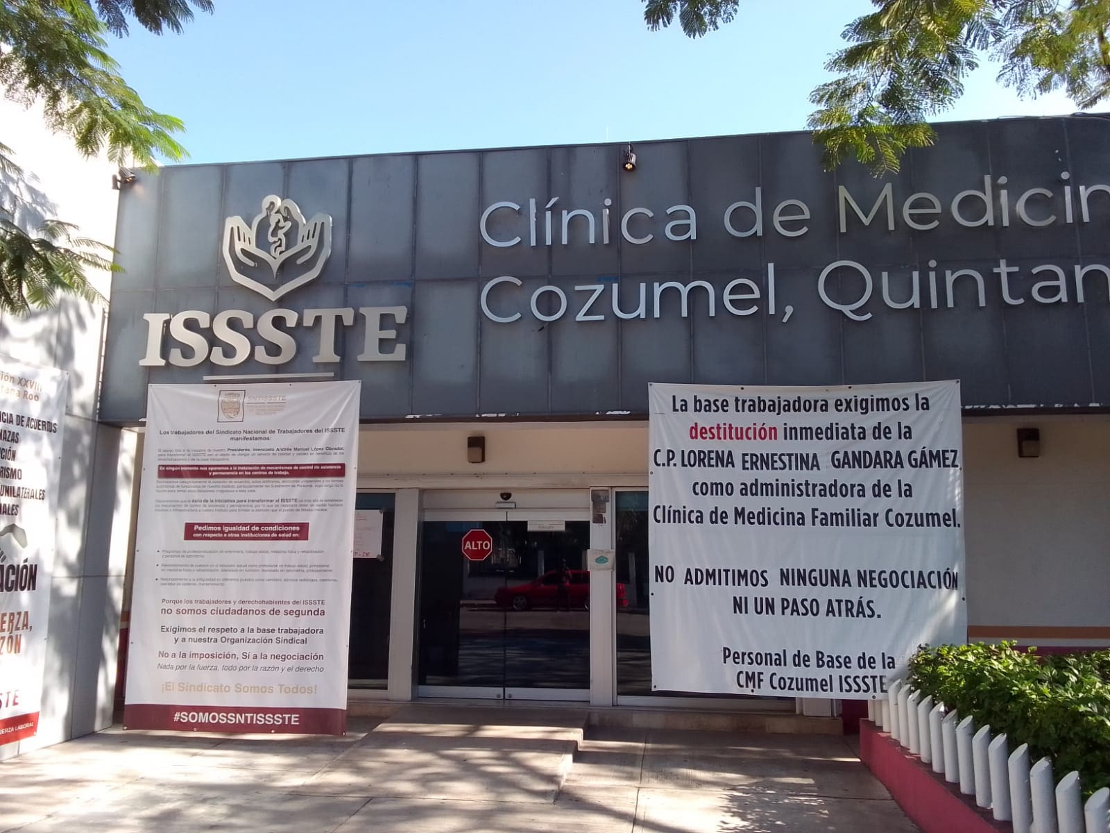 Empleados del ISSSTE Cozumel exigen la destitución de la administradora Lorena Ernestina Gándara, acusada de acoso laboral, malos tratos a derechohabientes y familiares, así como mala gestión en los recursos que necesitaba la unidad.