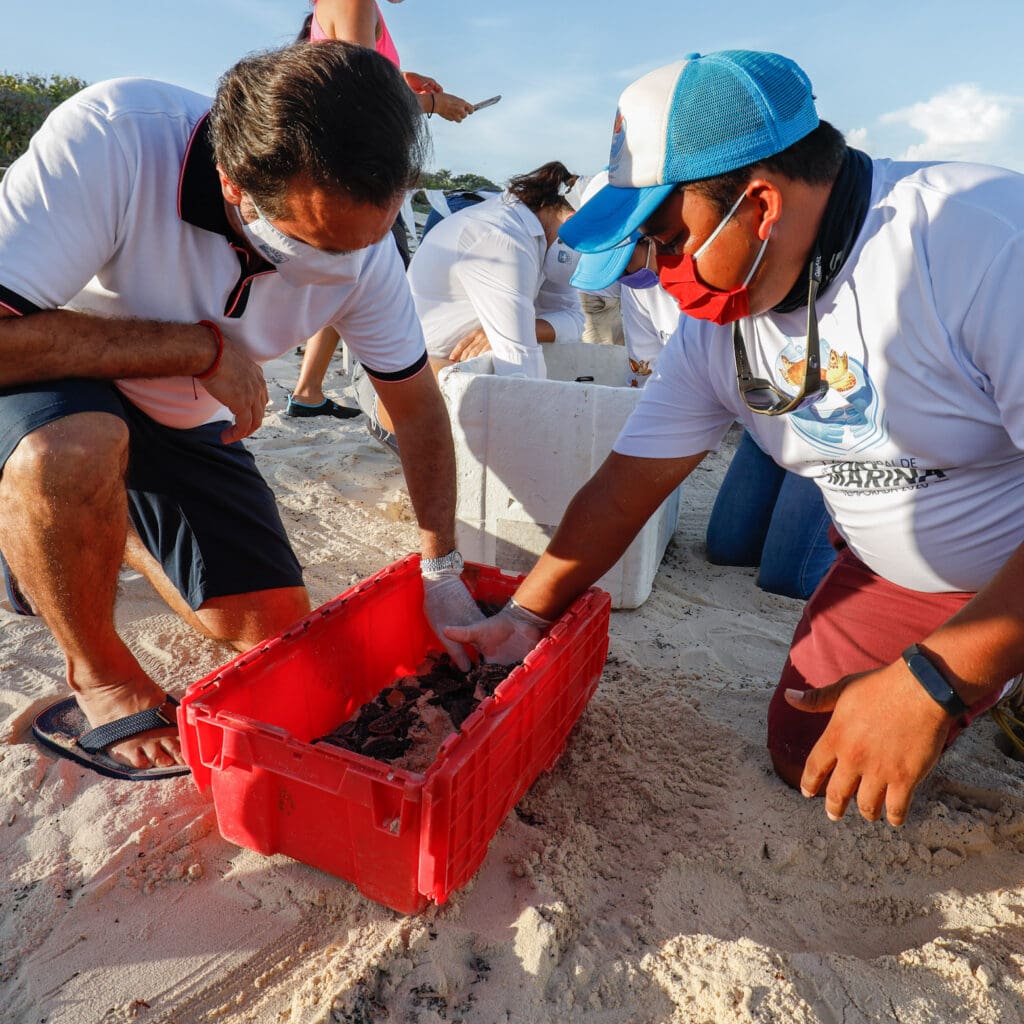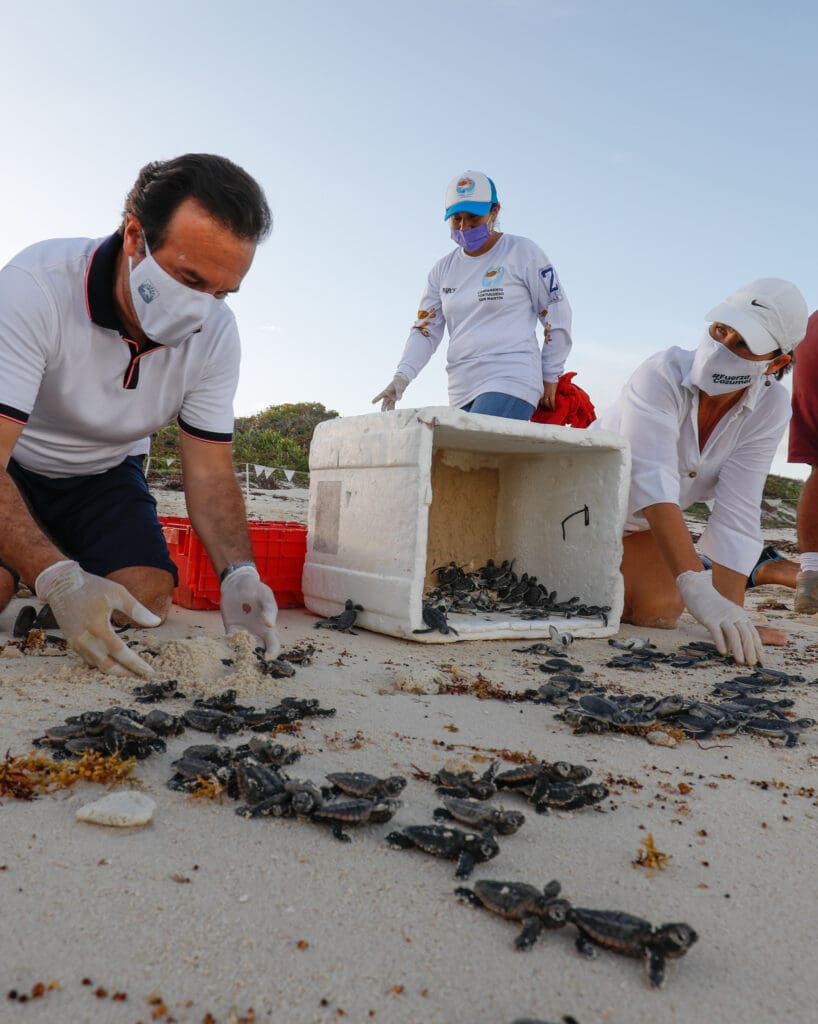 Cozumel, Quintana Roo, a 04 de septiembre de 2021.— La protección y conservación de las especies es de suma importancia para la actual administración; de ahí las acciones para el cuidado, rescate y resguardo de fauna silvestre, señaló el Presidente Municipal, Pedro Joaquín Delbouis, quien en compañía de la Presidenta del Sistema DIF Cozumel, Mary Mar Abad de Joaquín, participó en la liberación de 500 crías de tortugas marinas que brotaron de huevos resguardados antes del paso del huracán “Grace”.