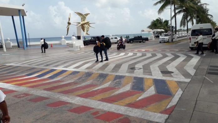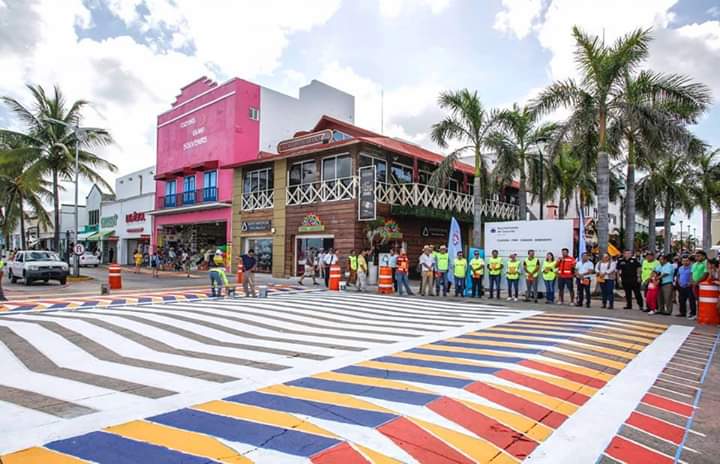 Cozumel.- La pintura del paso peatonal frente al muelle San Miguel se descoloreó notoriamente apenas un día después de ser inaugurado, al parecer por la premura de los trabajos.
