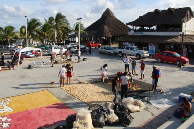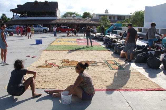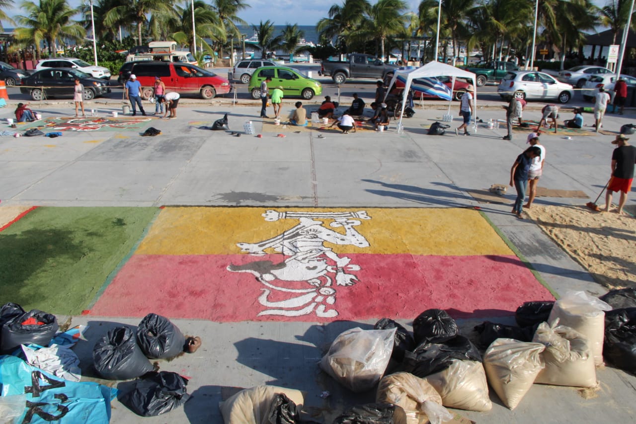 InicioCulturaGalería: Elaboran enorme tapete prehispánico en Puerto Morelos