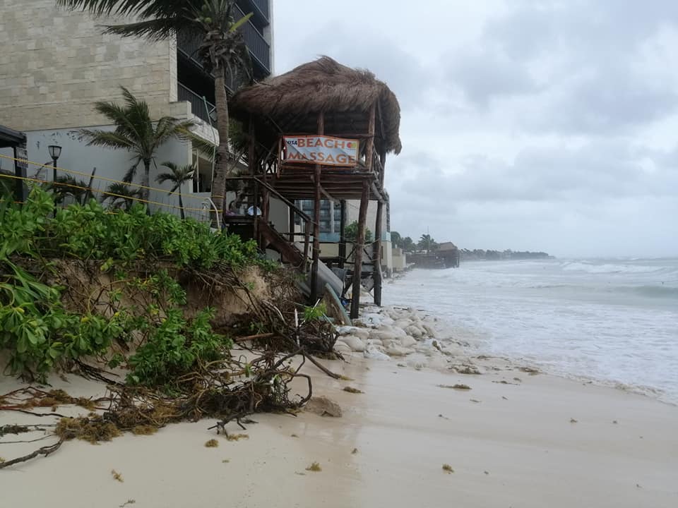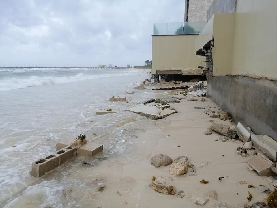 En su paso por Quintana Roo dejó varios daños en la infraestructura del resort Gran Hyatt y el Coralina Daylight Club en Playa del Carmen, consumiendo una parte considerable. No conforme con ello, en algunas imágenes el sargazo además se hace presente.