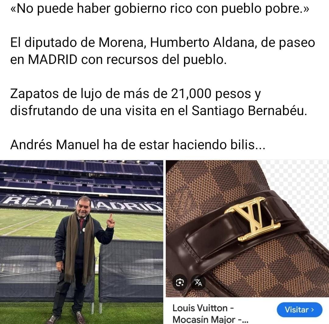 Las críticas se han centrado por ejemplo en el diputado federal por Quintana Roo, Luis Humberto Aldana Navarro, quien incluso subió una historia, la cual ya borró, en la que presumía su visita al estadio Santiago Bernabéu del Real Madrid y donde captaron que modelaba unos zapatos de la marca Louis Vuitton, que valen cerca de 20 mil pesos.