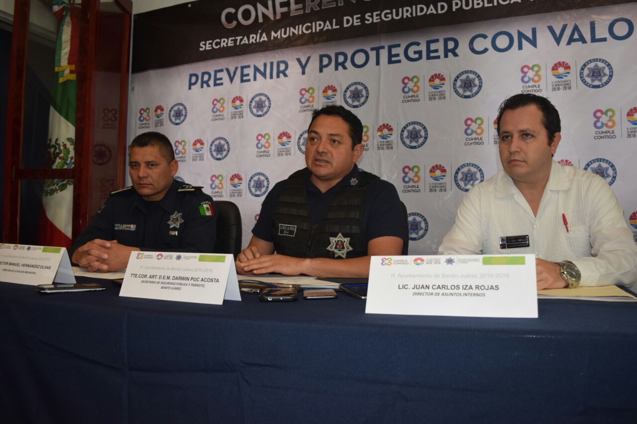 Cancún.- El secretario de Seguridad Pública de Benito Juárez, Darwin Puc Acosta, negó que sus agentes se excedieran en la fuerza usada para someter a dos reporteros, la tarde de ayer, acción que terminó en la hospitalización de uno, con dislocación de clavícula.