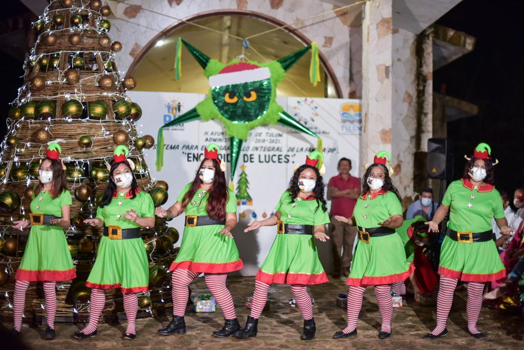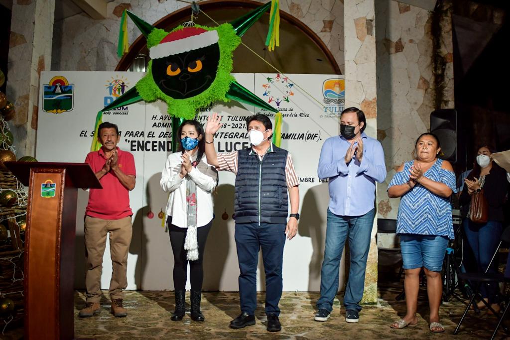 “El encendido de luces marca el inicio de una temporada de sensibilidad, donde la paz y la armonía deben prevalecer, disfrutemos estas fechas en familia y veamos con ánimo de prosperidad el próximo 2021”, agregó Celia Mas, presidenta honoraria del DIF Tulum.