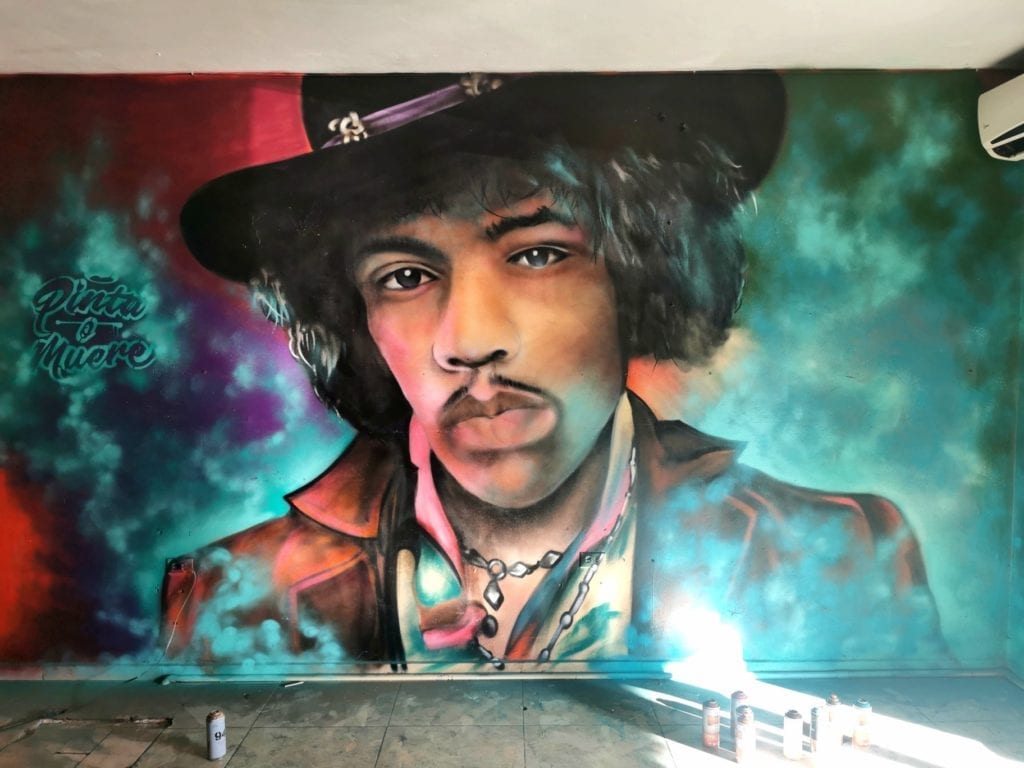 “Acabamos de terminar a Jimi Hendrix y a Jim Morrison. Vamos a pintar todavía a más personajes ahí y la idea es cambiarle la imagen, que no sean solo muros negros y tenga un poco más de identidad”, explicó el artista, que actualmente está muy activo en haciendo diversos murales con el coelctivo en Playa del Carmen y destinos aledaños.