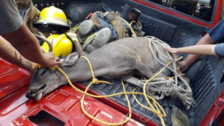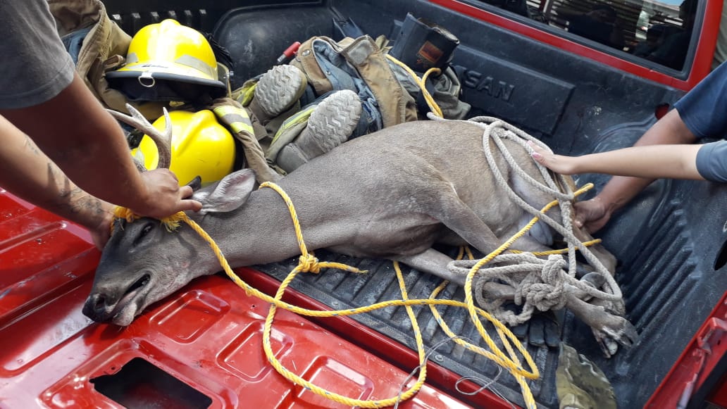 Cozumel.- Un pequeño venado que se escapó de un rancho cercano, fue avistado esta mañana en la zona urbana de Cozumel, siendo capturado al poco tiempo por Bomberos.