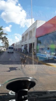 Deambula venado por centro de Cozumel