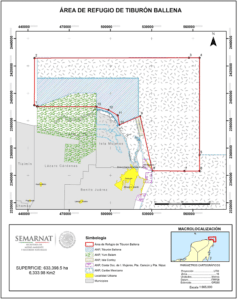 La superficie, de 633 mil 398 hectáreas, supera el área que engloba la Reserva de la Biósfera del Tiburón Ballena, al incluir una mayor distancia hacia el norte de Holbox, además de toda una extensión hacia el este y norte de Isla Mujeres.