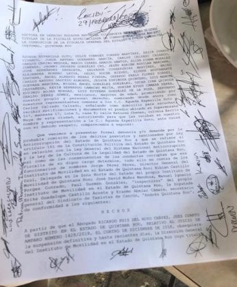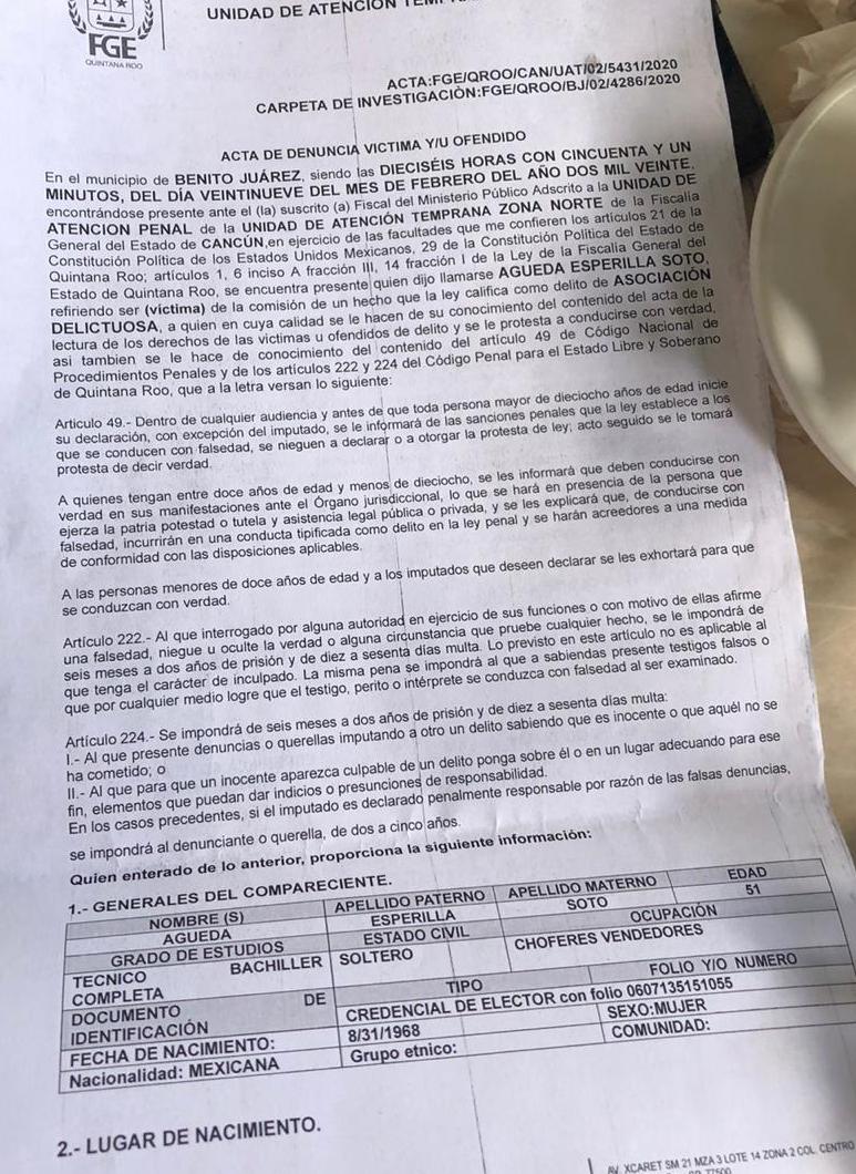 Cancún.- Socios y conductores de la plataforma UBER denunciaron por delitos que pudieran extenderse a asociación delictuosa, a Erasmo Abelar Cámara, líder del sindicato de taxistas; Jorge Pérez y Bibián Castillo Dzul del Instituto de Movilidad; y a la diputada Erika Castillo, pues los actos vandálicos en contra de los individuos y autos se ha intensificado.